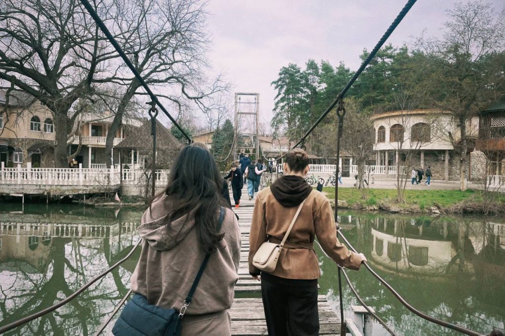 Самый запоминающийся момент — это мост у центра осетроводства. Полуразвалившийся, с досками, которые не внушают доверия. На нём школьники ловят рыбу, а с другой стороны — стая бродячих собак. Мы остановились, постояли, посмотрели друг на друга и какое-то время реально думали, стоит ли идти дальше. Разворачиваться уже не хотелось, поэтому решили рискнуть.